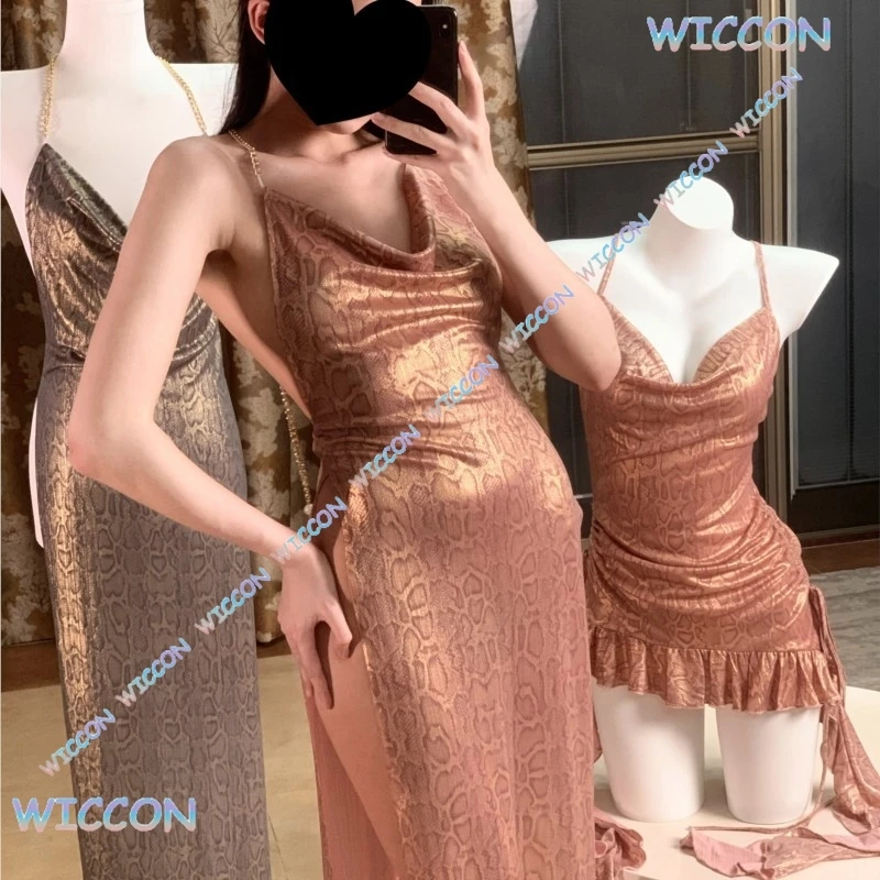 Hemera@Python узор сексуальное вечернее платье для свиданий с цепочкой на шее облегающее платье модель женское сексуальное барное платье с высоким разрезом оригинальный De