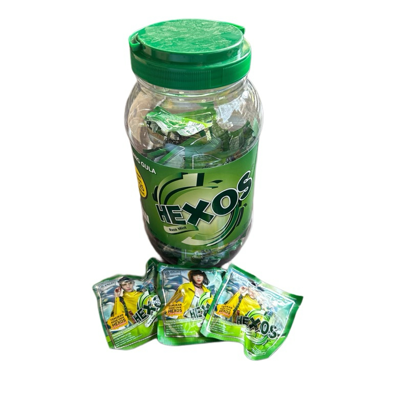 Permen hexos yang dikemas kembali kedalam toples
