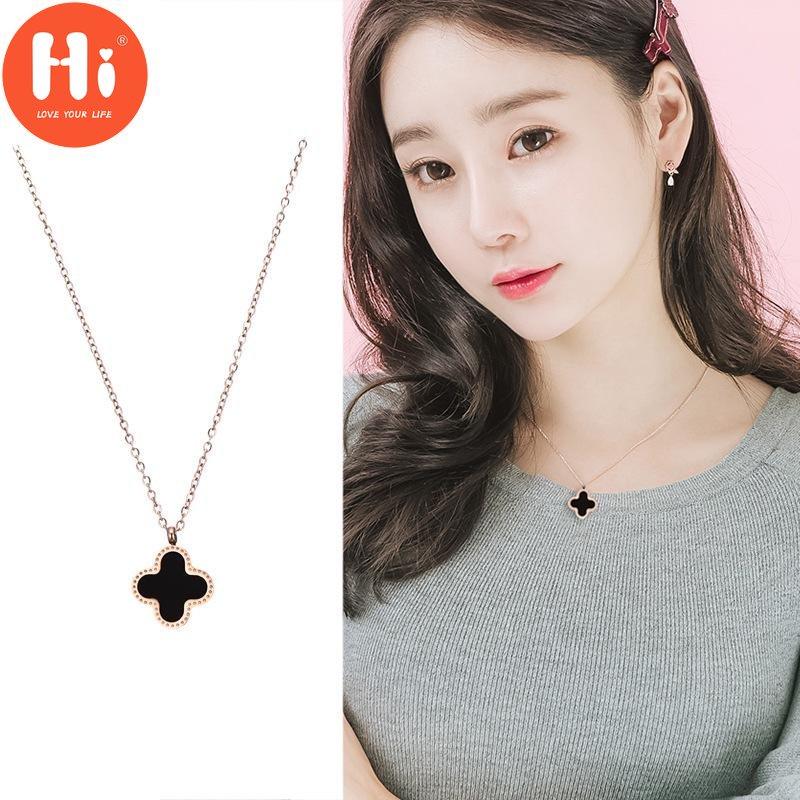 Hi Rose Gold Двусторонняя четырехлистная клеверная ожерелье Женское золотое покрытие Цепочка ключицы Модный кулон