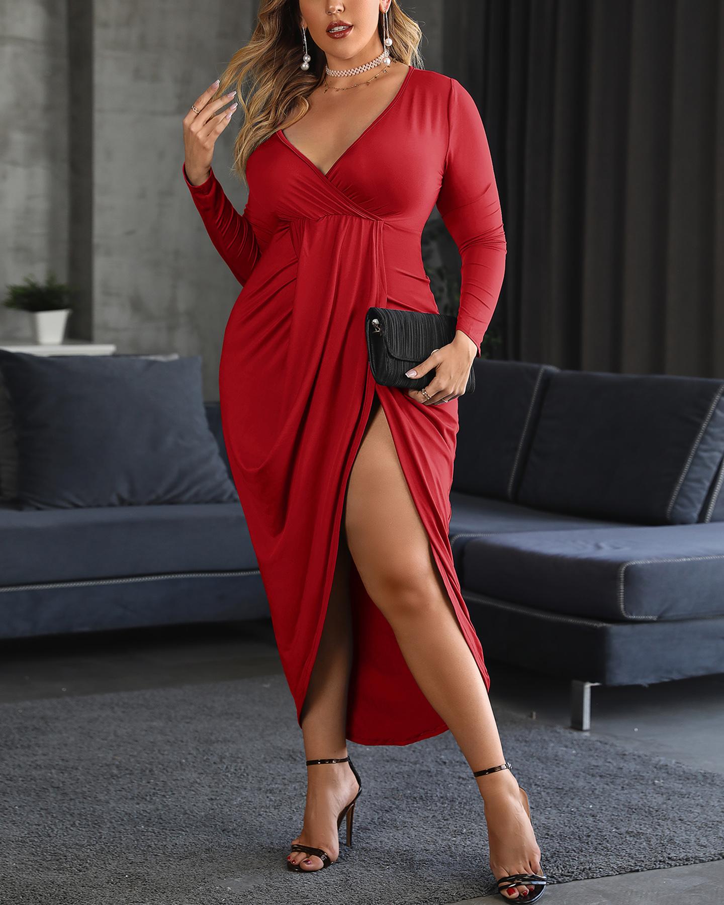 High Slit Ruched Party Dress, Red