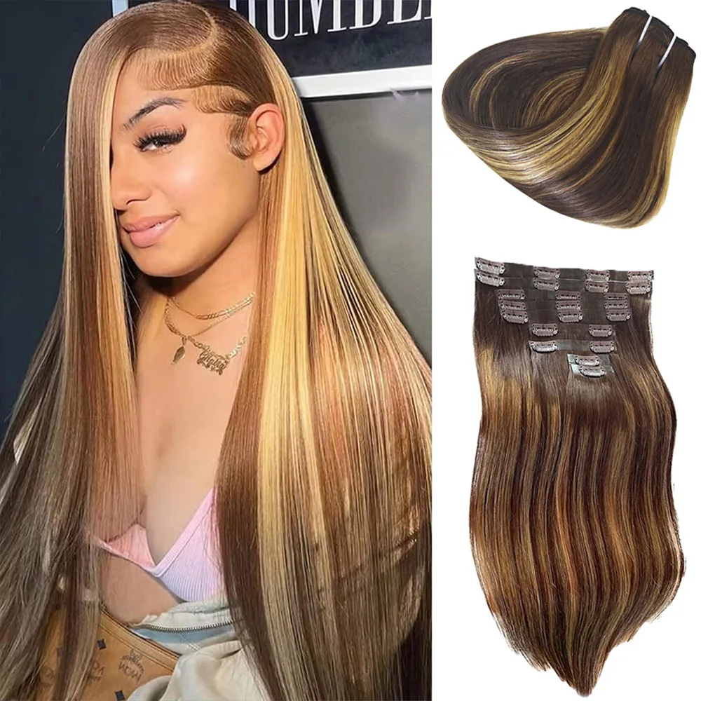 Highlight Clip Ins Human Hair Extensions 100% Remy Hair 120G/Set 9Pcs Straight Clip In Human Hair Ombre Real Hair Extensions