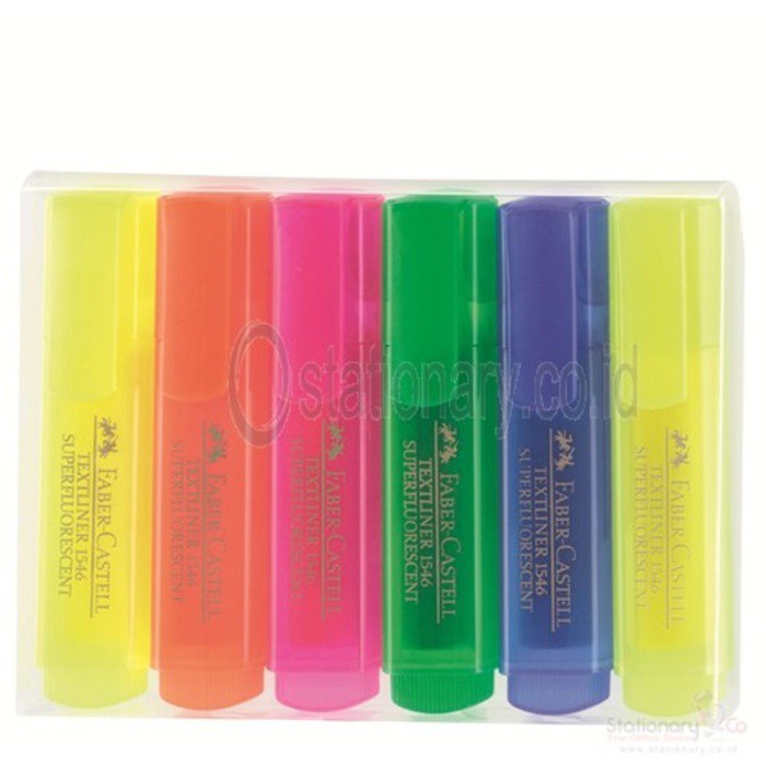 Highlighter Textliner Translucent Faber Castell 1546 memberikan warna yang lebih terang dan tahan lama. Tinta lebih cepat kering pada permukaan kertas biasa dan kertas fax. Harga Tertera adalah Perpcs
