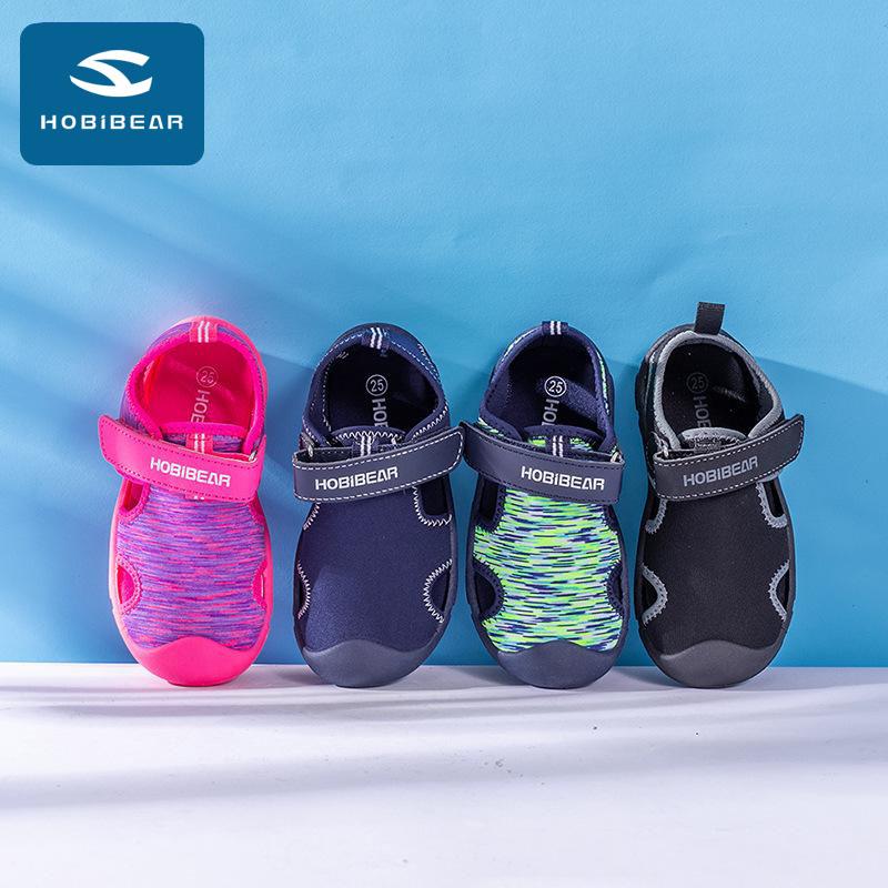 Hobibear, летние модные повседневные сандалии на плоской подошве для девочек, пляжная обувь Baotou для мальчиков