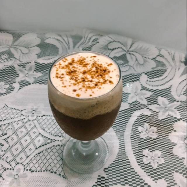Terbuat dari saus butterscoth, air soda, dan caramel whip cream.