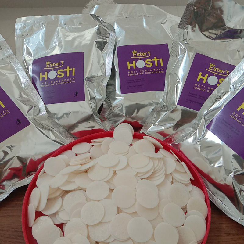 Hosti ini dibungkus rapi dengan alufoil sehingga sangat aman dikomsumsi dan awet serta garing pada saat digunakan.