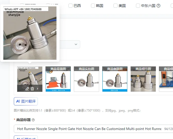 Hot Runner Nozzle Single Point Gate Hot Nozzle Can Be Customized Multi-point Hot Runner System