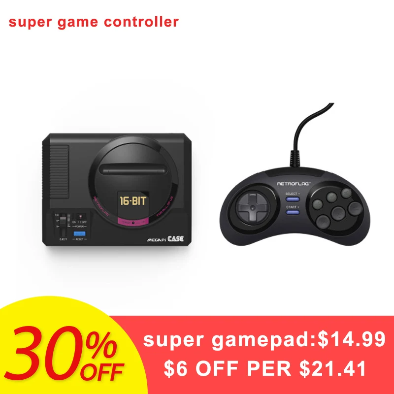 Hot Sale 16 Bit Retroflag MEGAPICASE Raspberry Pi MD Retro Games Case Video Consoles with Classic USB wired Gamepad Controller
