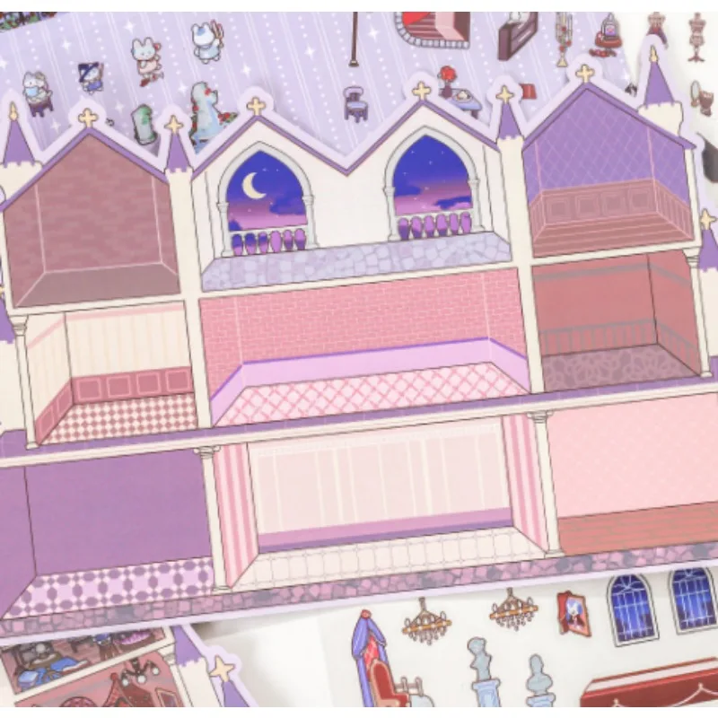 Hotel Castle and Ship Scene Stickers DIY Miniature Parent Child Interactive Classic Toys Sticker Cartoon Chipmunk Rabbit