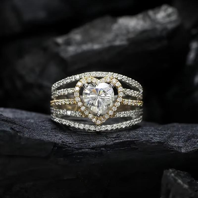 Huitan Кольца с ярким сердцем из кубического циркония Великолепные многослойные обручальные кольца Ювелирные изделия для женщин Вечные помолвочные аксессуары 10