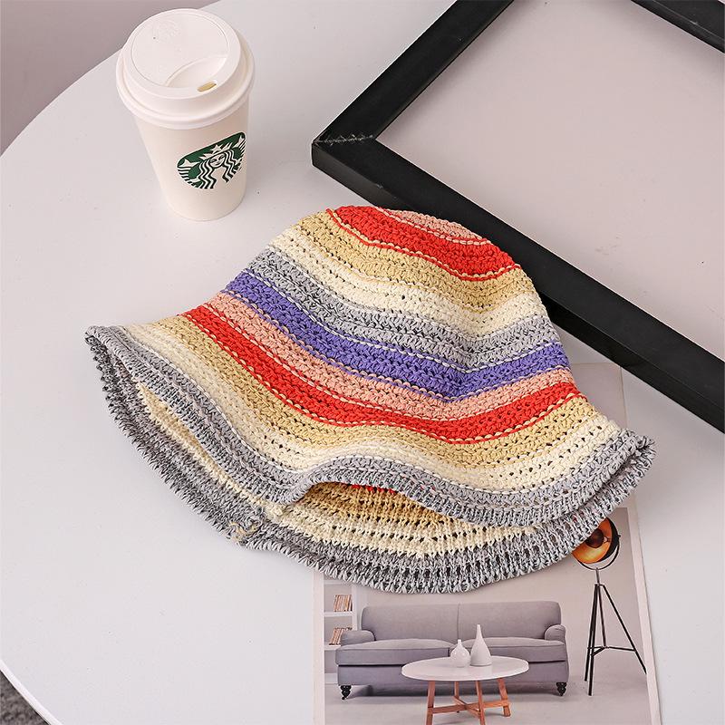 Hyunya wind rainbow соломенная шляпа-ведро женская летняя дышащая солнцезащитная шляпа-ведро с солнцезащитным кремом маленькая соломенная шляпа с изображением лица One Size