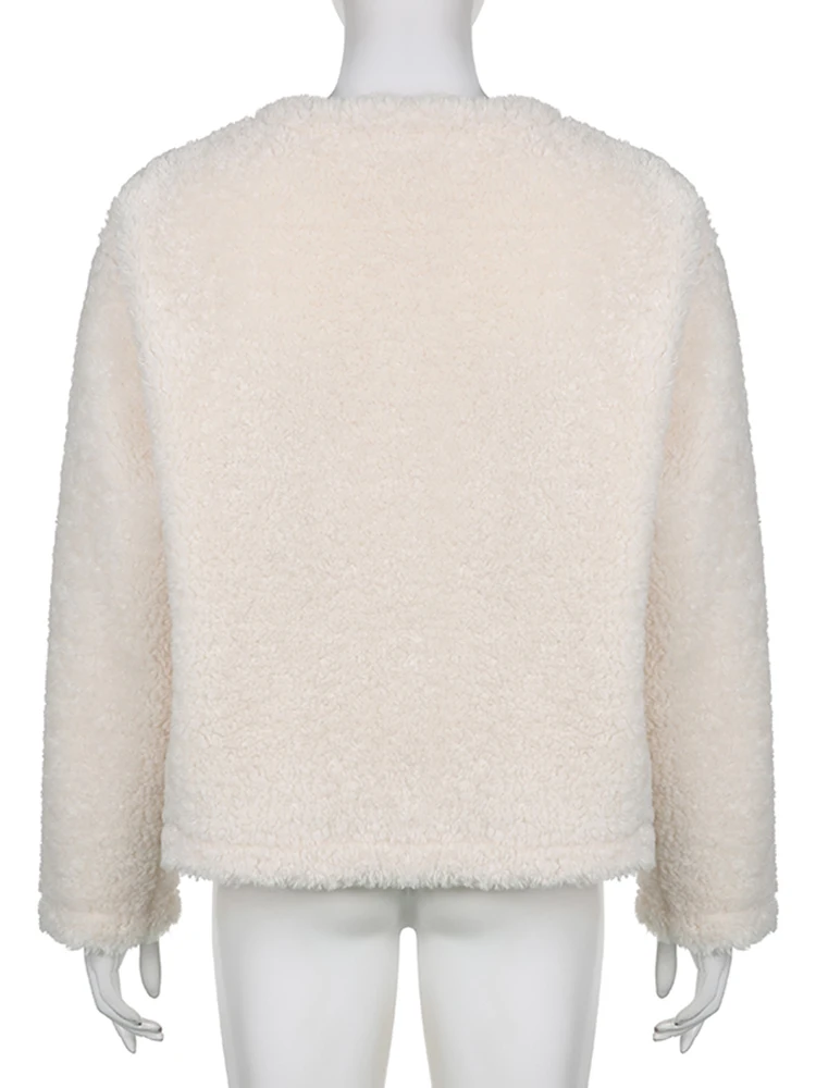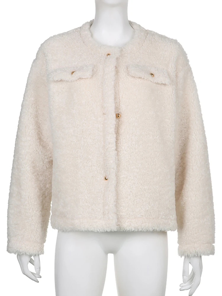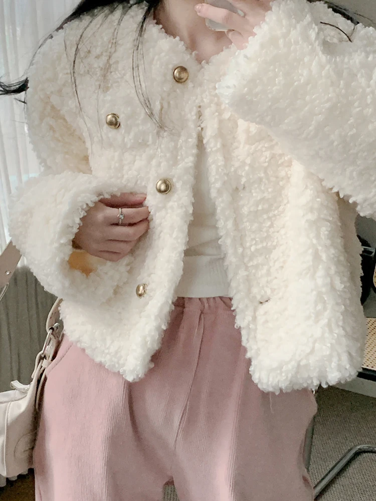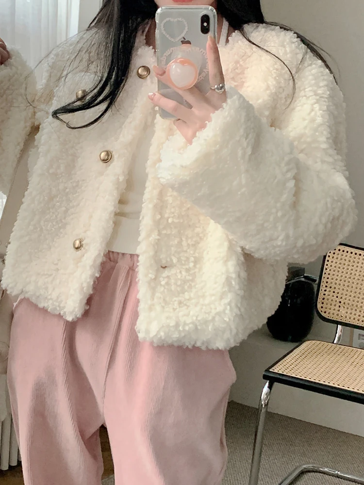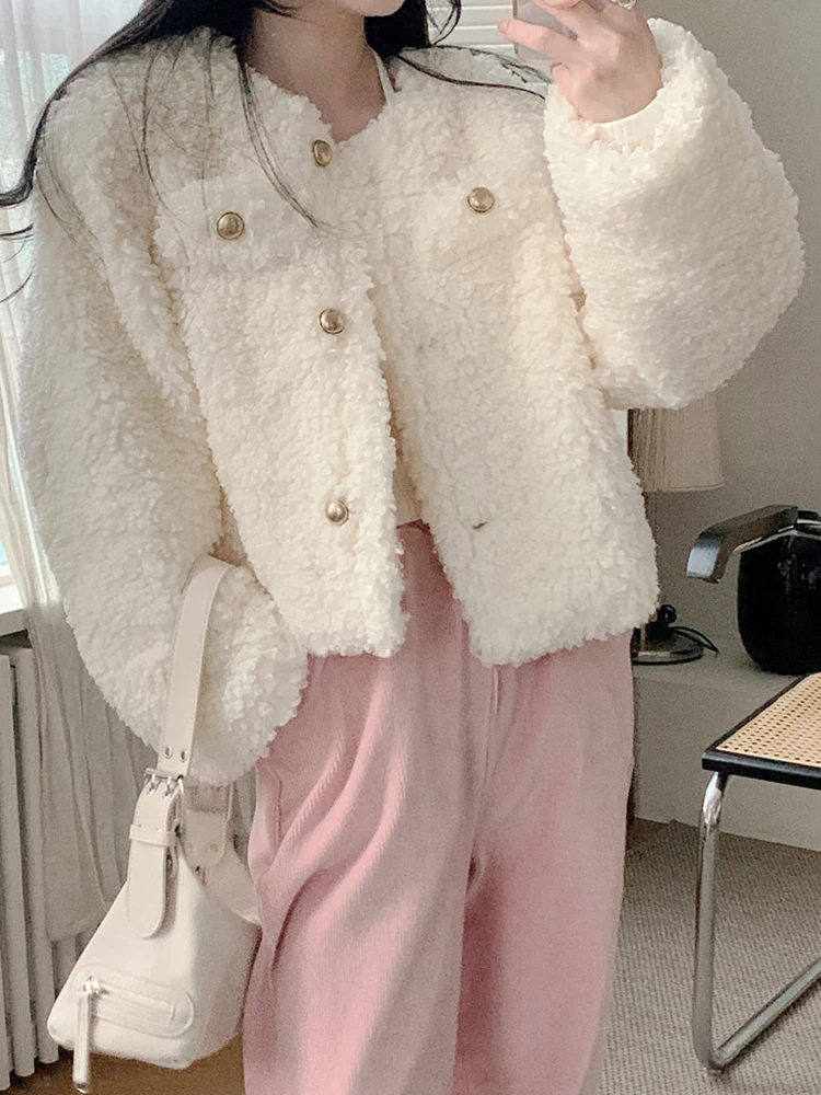 IAMHOTTY нежная куртка из овечьей шерсти для зрелых, белая Элегантная Модная однобортная пушистая куртка, Милая уличная одежда, женская одежда, новинка