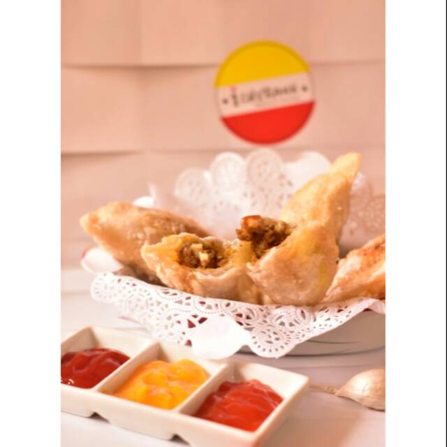 Cireng frozen spesial buatan Surabaya, isi daging giling yang berbumbu kari khas jepang ditambah dengan keju melted.