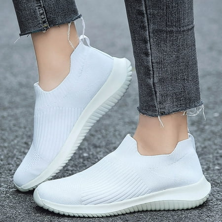 Wazshop Womens Flats Non-Slip Sneakers Slip On Casual Shoes Lightweight Comfort Sock Sneaker Women Walking Shoe Mesh Breathable Black US 5.5