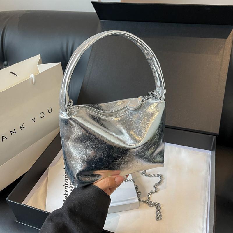 IELGY Женская универсальная серебряная сумка-мешок, сумка через плечо с цепочкой