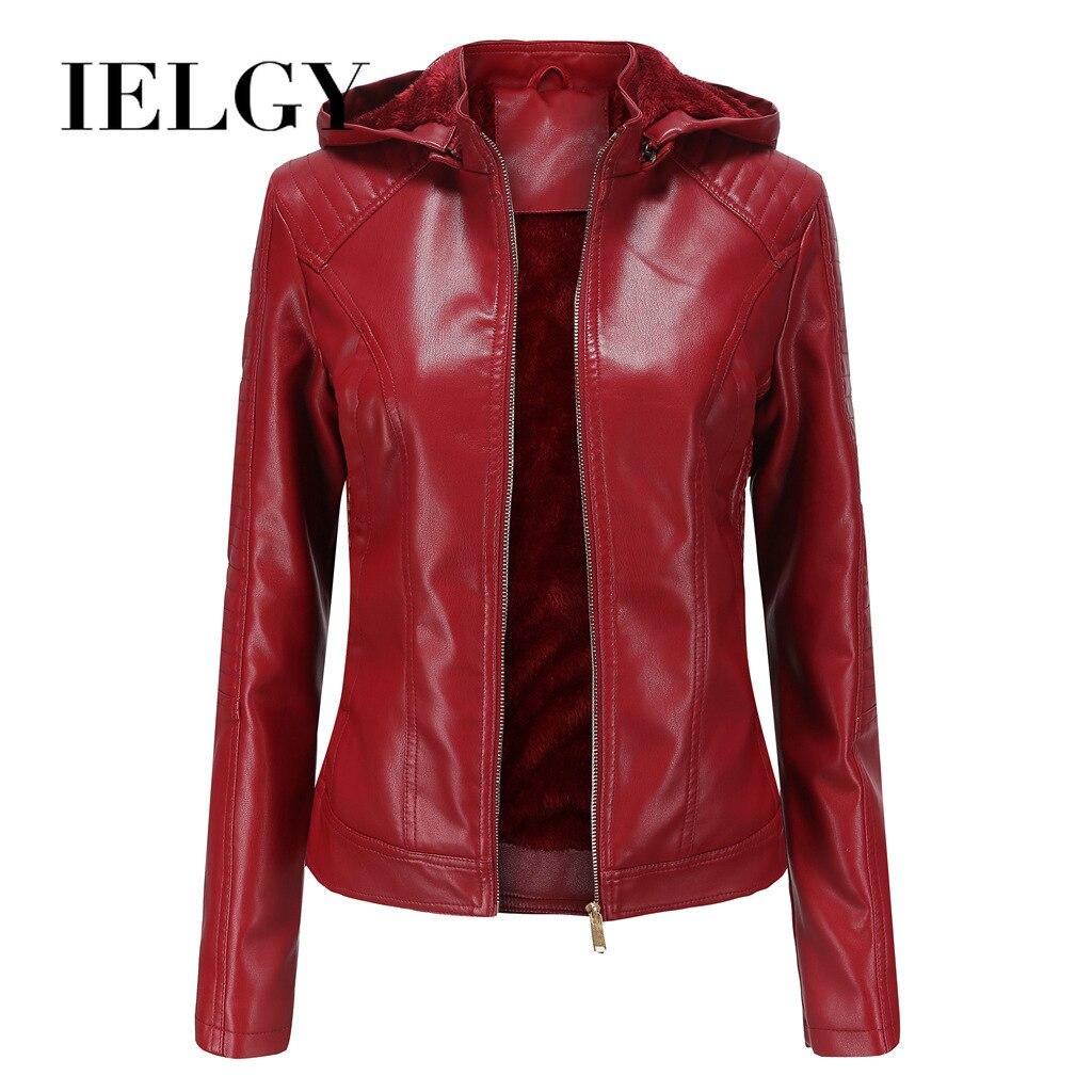 IELGY кожаная женская удобная теплая плюс бархатная модная короткая повседневная куртка большого размера с капюшоном XXXL красный