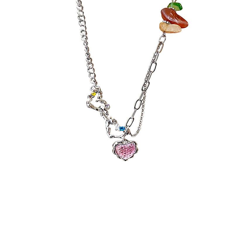 IF ME сладкое розовое сердечко ожерелье красочный камень циркон серебряная цепочка колье для женщин ювелирные аксессуары