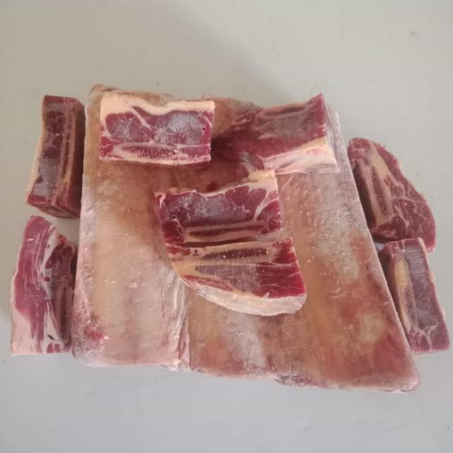 Iga sapi bagian tengah /short rib mempunyai daging yang lumayan /spesial sudah dipotong ukuran potongan 4-5cm isi per pack 12-13 potong berat per pack 0.97ons-1kg