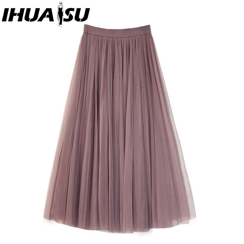 IHUASU Женская Мода Повседневная Однотонная Принтованная Летняя Весенняя Юбка L кофейный