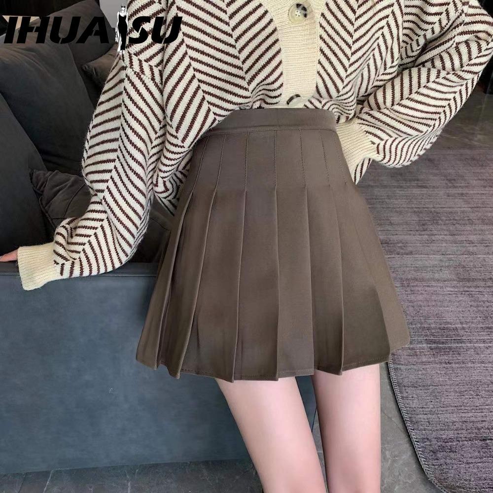 IHUASU Женская Мода Повседневная Однотонная Принтованная Летняя Весенняя Юбка XXXL кофейный