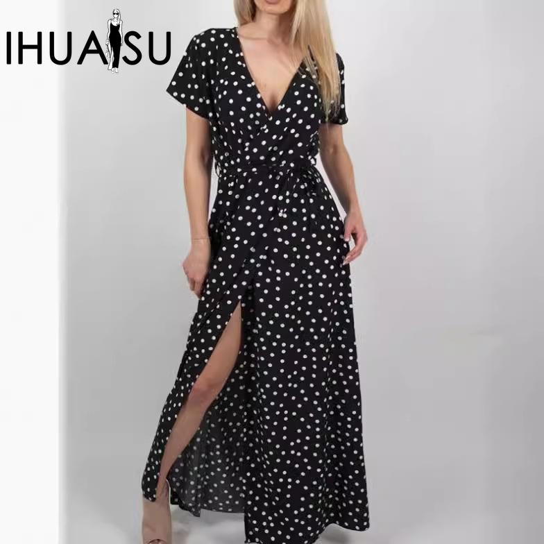 IHUASU женское летнее платье с короткими рукавами и v-образным вырезом и низким вырезом в горошек с принтом