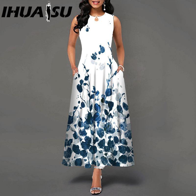 IHUASU 48 цветов Новое женское свободное винтажное платье с цветочным принтом и оборками Платье Befree Большие летние вечеринки Майки Элегантные платья макси XXXL