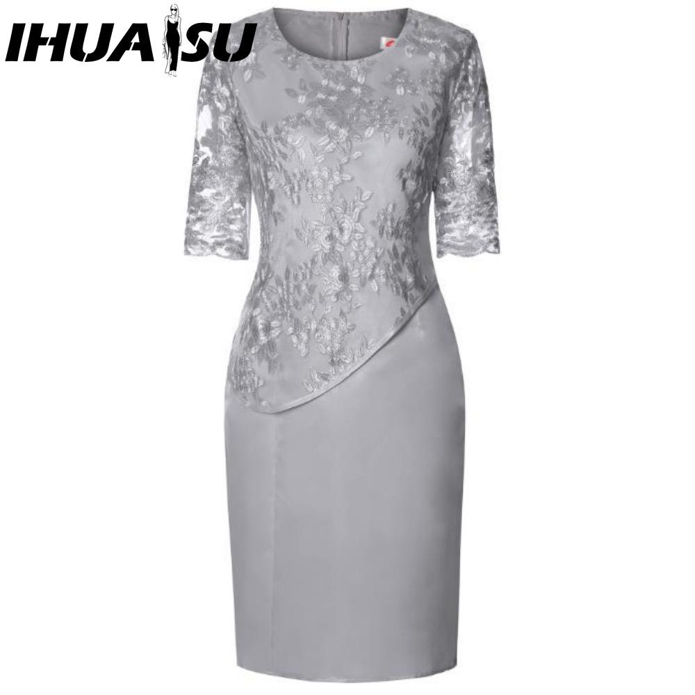 IHUASU S-5XL Платье для вечеринки длиной до колена с кружевным верхом и аппликацией по подолу S серый