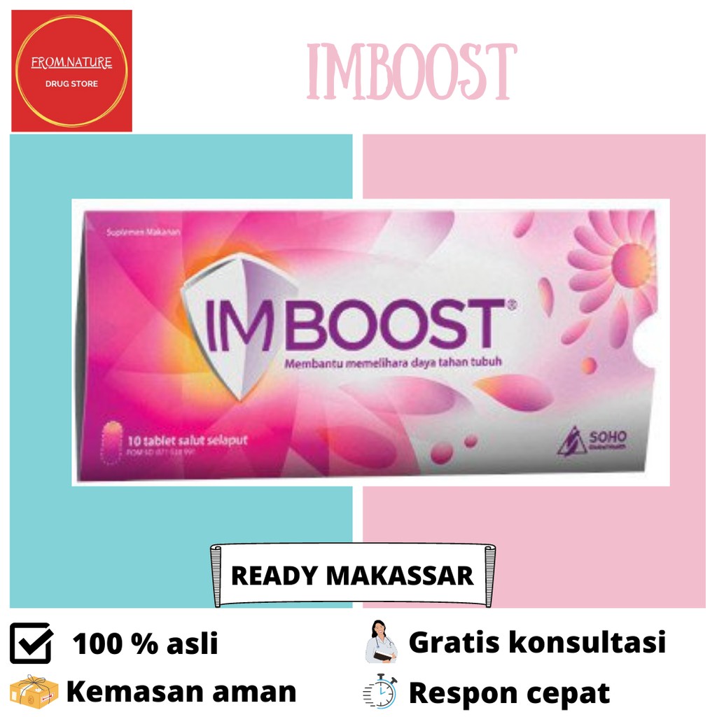 Imboost Tablet merupakan Suplemen daya tahan tubuh yg bersifat imunostimulan yg berfungsi untuk menjaga kesehatan tubuh agar tidak mudah sakit