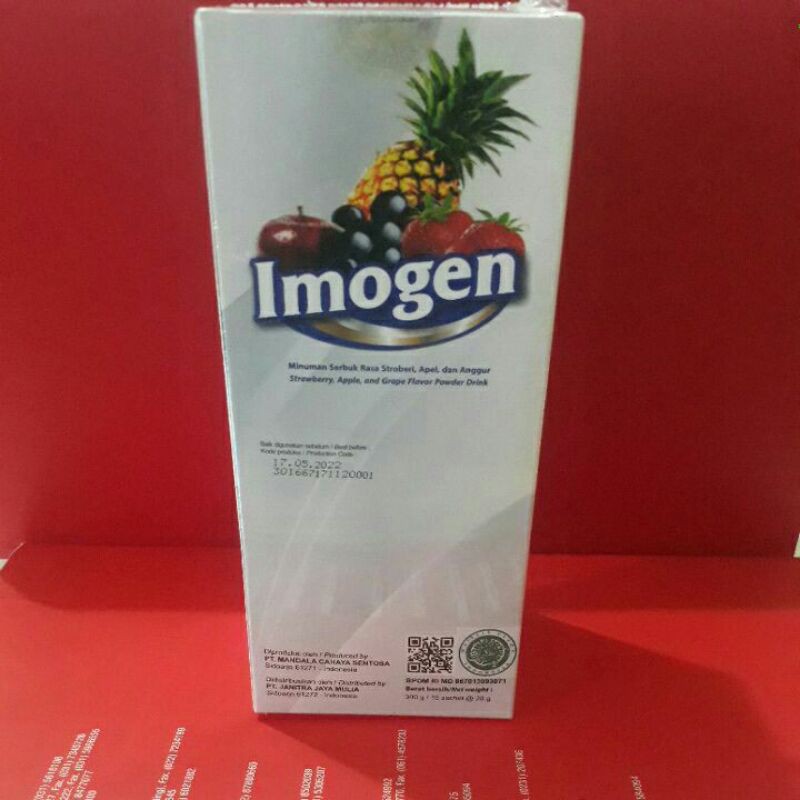 Imogen Mix Fruit adalah minuman serbuk yang sangat bagus untuk mengatasi kebotakan,selain itu juga bermanfaat untuk menjaga kesehatan tubuh karena terbuat dari bahan-bahan herbal pilihan.