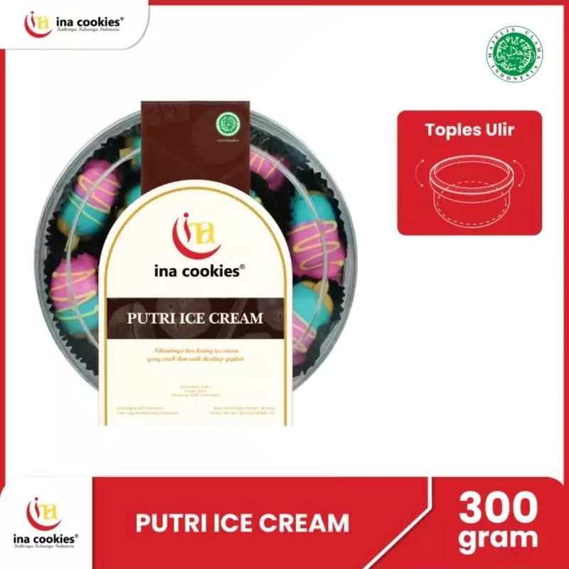 Nikmati keunikan rasa segar Ice cream dalam kue kering best seller Ina Cookies: Putri Ice Cream. Berbalut adonan renyah butter, cornflakes dan lelehan coklat di atasnya.