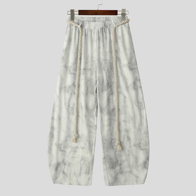 INCERUN Винтажный мужской ремень с эластичной талией и принтом тай-дай, повседневные длинные мешковатые брюки
