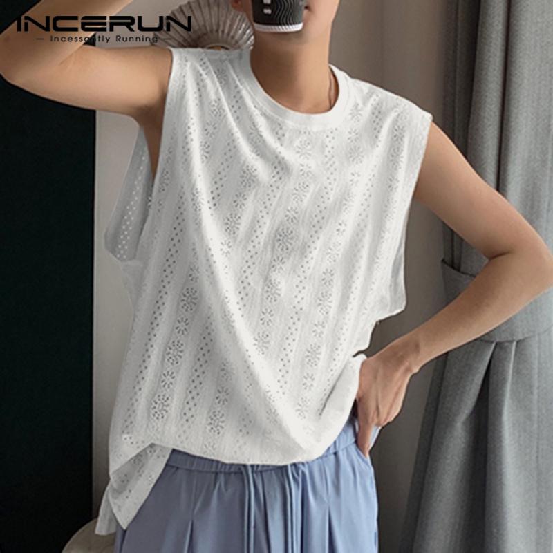 INCERUN Летний мужской жилет без рукавов Свободный Вид через сетку Пряжа Танк Топы