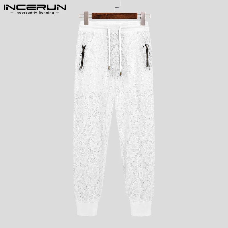 INCERUN Мужские штаны для сна кружевные на молнии пэчворк на шнурке прозрачная Домашняя одежда 2021 пикантные Мужские Брюки с карманами женские ...