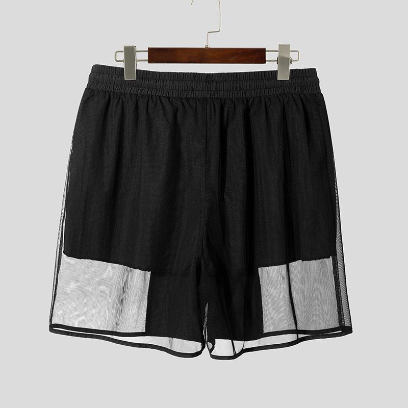 INCERUN Мужские эластичные шорты из сетки, прозрачные, с лоскутной вставкой, спортивные, для тренажерного зала, мини XL чёрный