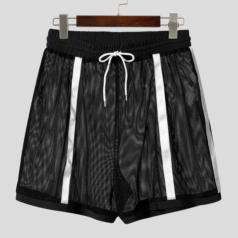 INCERUN Мужские эластичные шорты-мини для пляжа, домашней носки, из сетки с прозрачными вставками 4XL