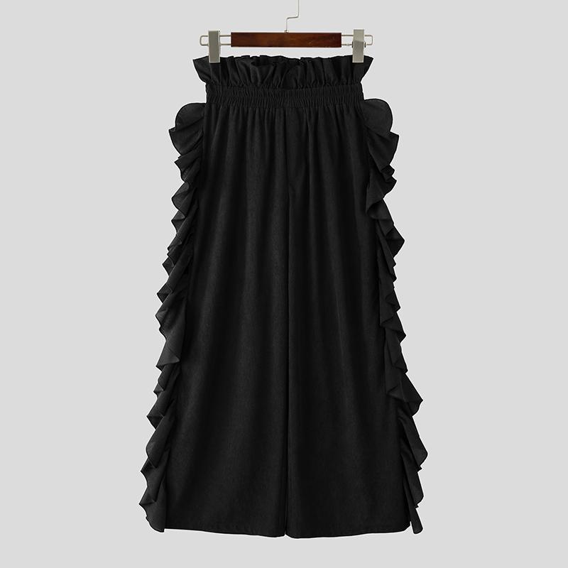 INCERUN Осенние мужские повседневные брюки из вельвета с высокой эластичной талией и оборкой по низу, длинные прямые брюки S чёрный