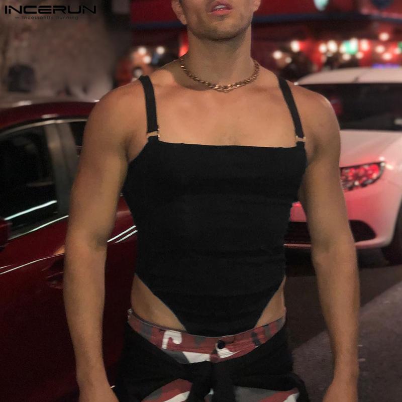 INCERUN Черные мужчины Ремешки Тонкие топы Сексуальная Клубная Одежда Боди