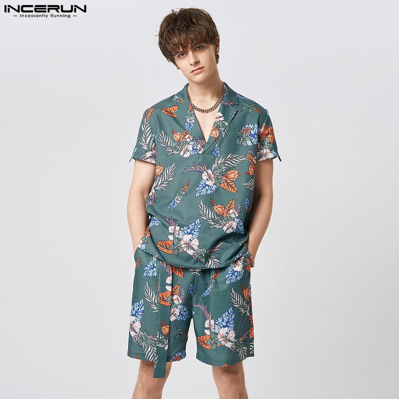 INCERUN летние женские комплекты с принтом из 2 предметов, рубашки с короткими рукавами, шорты