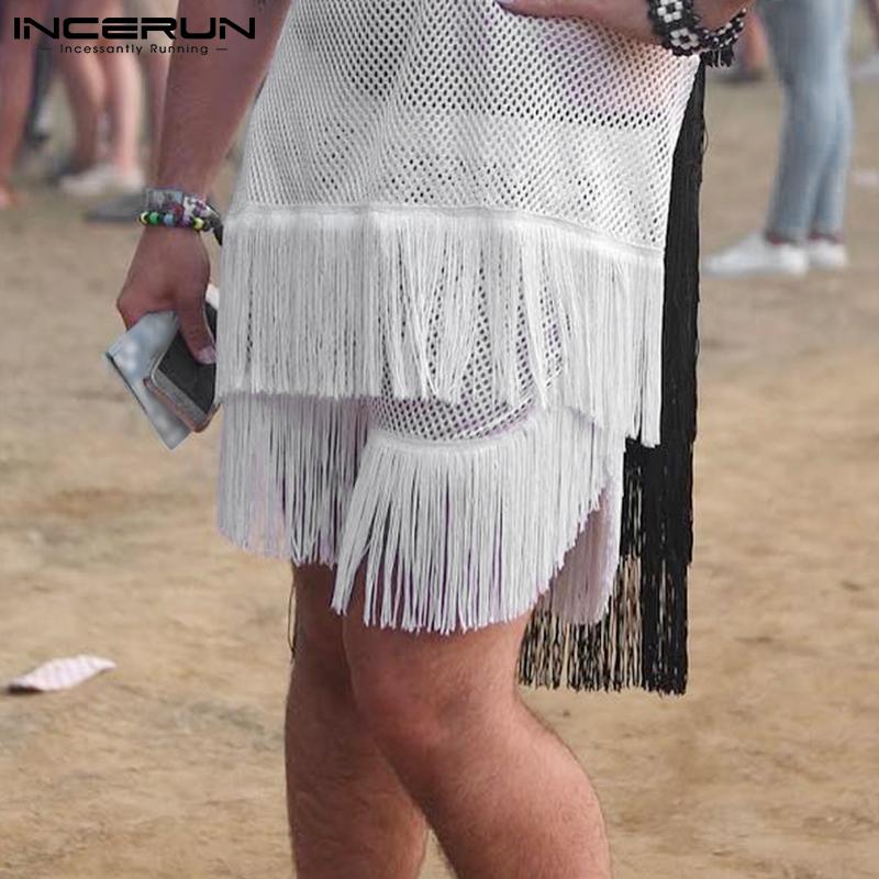 INCERUN/летние мужские полые шорты INCERUN с кисточками, прозрачные шорты в сеточку, дышащие пляжные белые повседневные свободные короткие брюки размера плюс