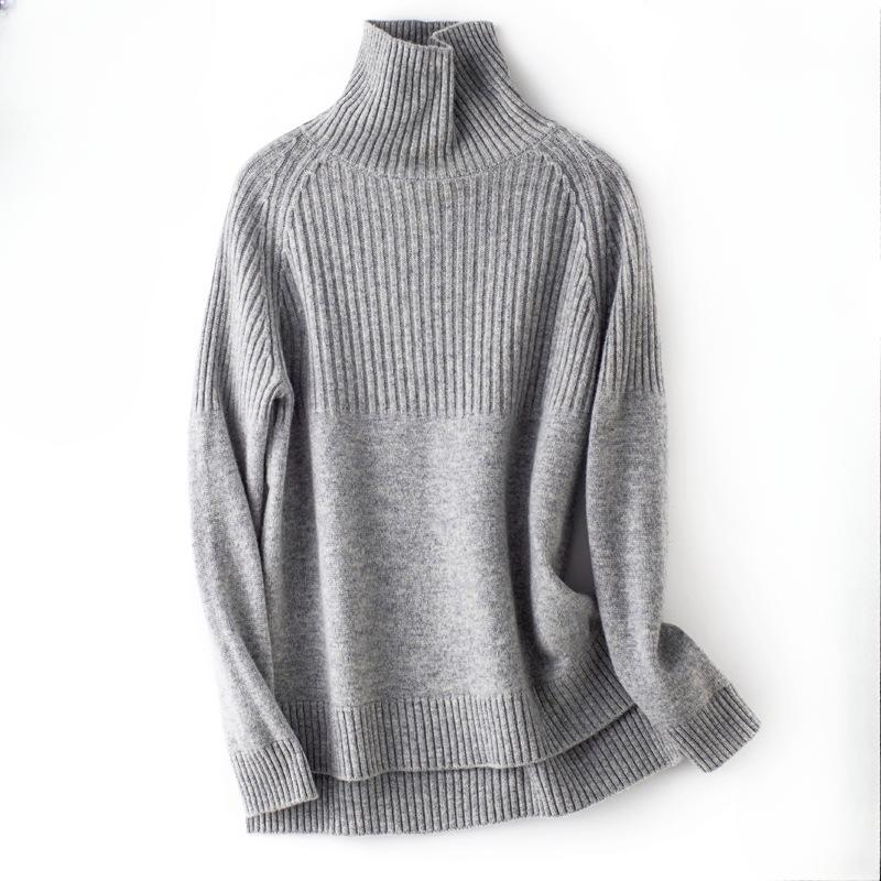 INDFS Женская мода Повседневный Осень Зима Однотонный Принт Длинный Рукав Высокий Воротник Свитера XL серый