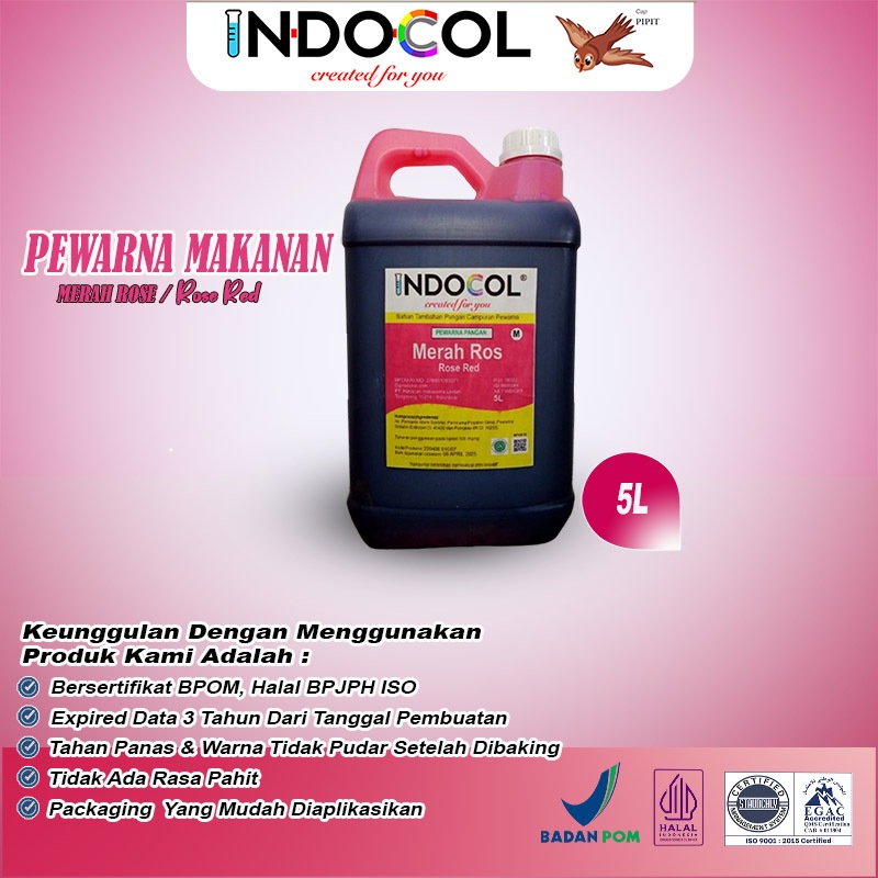 Deskripsi INDOCOL PEWARNA MAKANAN CAIR MERAH ROS UKURAN 5 LITER