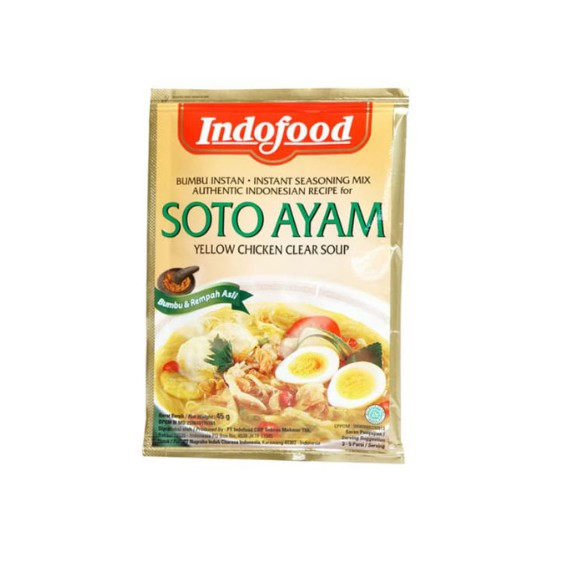 Indofood Bumbu Instan Soto Ayam merupakan bumbu instan soto siap saji yang memiliki rasa gurih dan nikmat, terbuat dari bumbu dan rempah-rempah asli. Diproses tanpa bahan pengawet dan pewarna, higienis dan tidak kotor di tangan, sehingga praktis digunakan tanpa perlu mengulek.