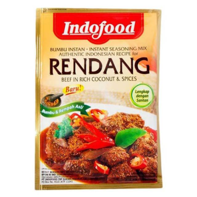 Indofood Bumbu Instan Rendang adalah salah satu bumbu instan yang dipersembahkan oleh Indofood untuk masakan rendang yang lezat dan nikmat. Bumbu Indofood ini diracik dari perpaduan bumbu dan rempah-rempah alami yang segar. Perpaduan tersebut dihasilkan dari pasteurisasi yang menjaga kesegaran rempah.