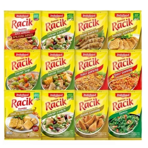 Bumbu Racik Indofood terbuat dari bumbu dan rempah-rempah asli yang telah dikeringkan tanpa penambahan bahan pengawet dan pewarna. Penggunaannya praktis sehingga Anda tak perlu mengulek sendiri, sekaligus menjaga dapur tetap bersih.