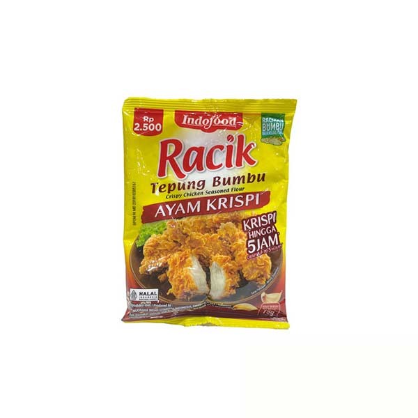 Indofood Racik Tepung Bumbu Ayam Krispi Merupakan Bumbu Terbuat Dari Paduan Spesial Tepung Terigu, Beras, Dan Tapioka Berkualitas. Diracik Khusus Dengan Aneka Rempah Pilihan Sehingga Menghasilkan Tepung Yang Renyah Tahan Hingga 5 Jam Dan Gurih Kaya Rasa. Praktis Digunakan Dan Cocok Dengan Citarasa Keluarga.