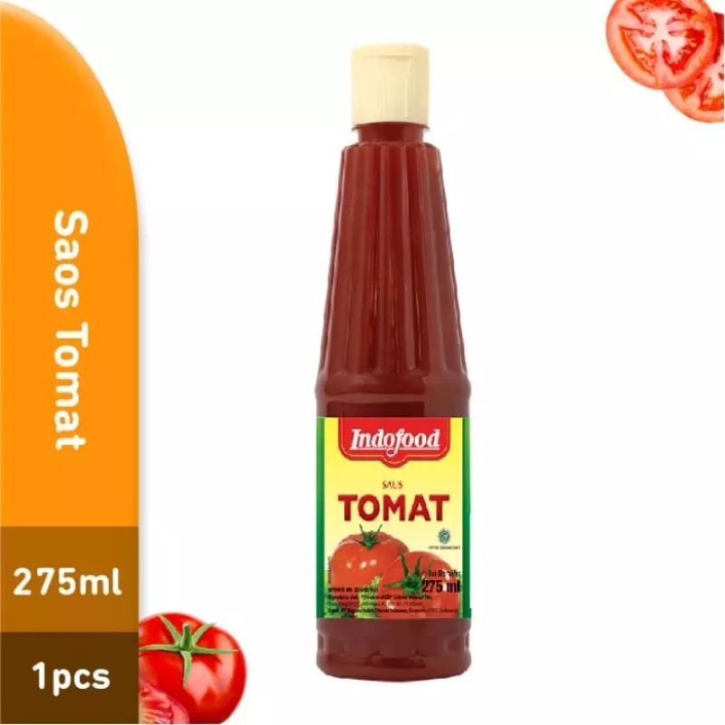 Indofood Saus Tomat 275 ml merupakan saus tomat yang terbuat dari tomat segar pilihan dan bahan-bahan lainnya. Terbuat dari Air, gula, tomat, garam, pengental nabati, pengatur keasaman, pengawet (natrium benzoat, natrium metabisulfit), perisa (mengandung seledri, anti a-tokoferol).