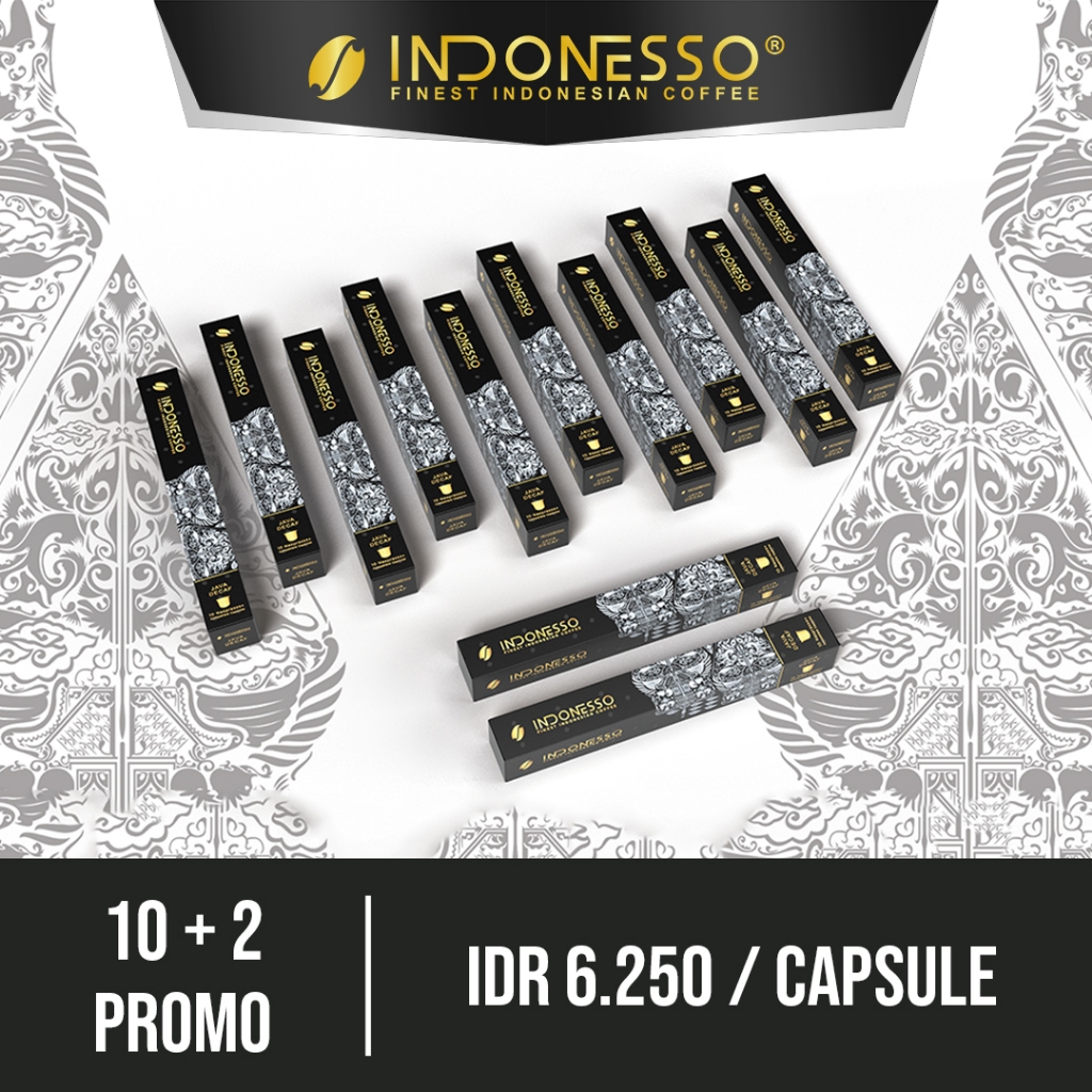 INDONESSO 10+2 Java Decaf Decaffeinated Coffee Capsules Compatible with Nespresso Machines / Kapsul Kopi Rendah Kafein