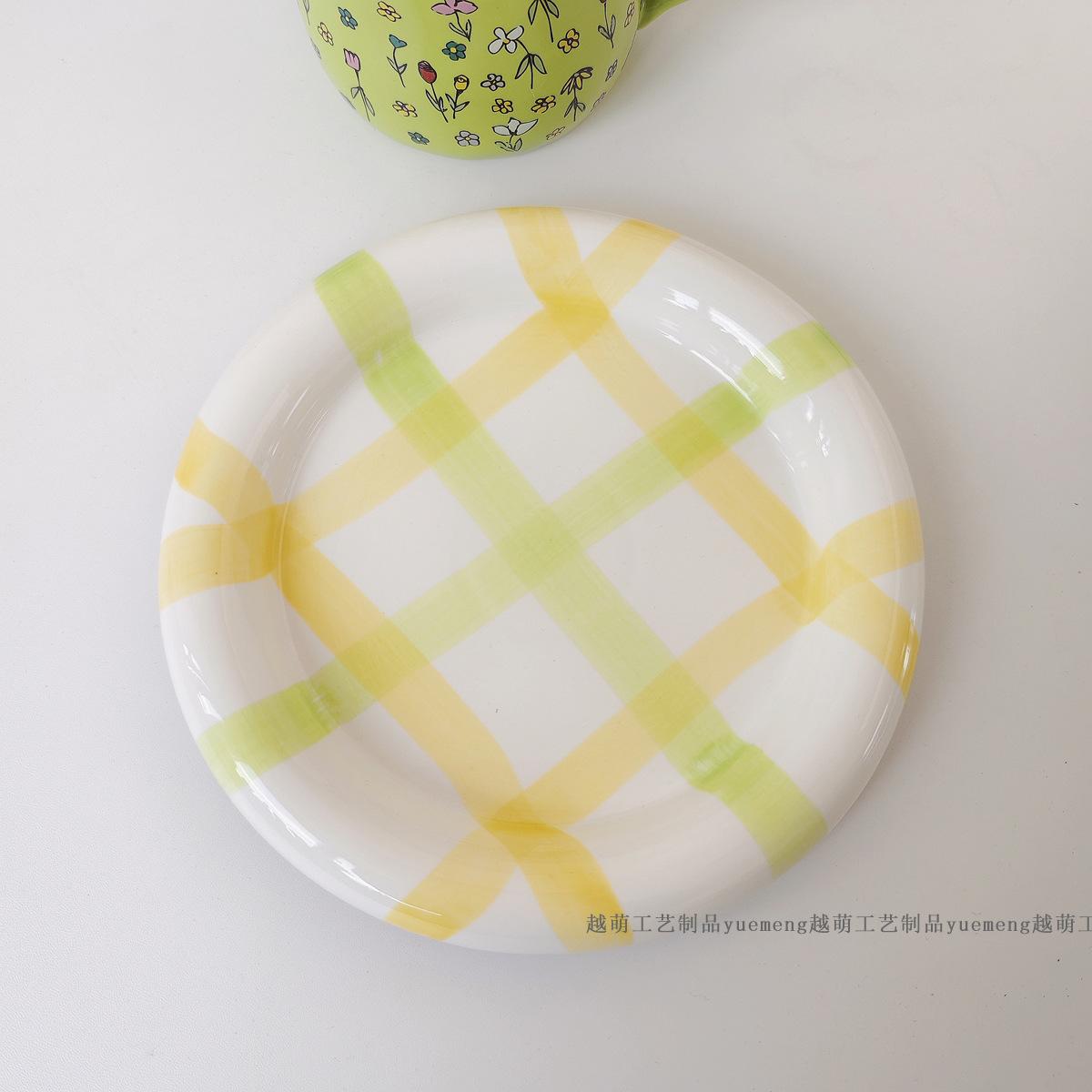 INS Ветер Высокая Красота Полоса Волна Точка Подглазурная Керамическая Тарелка Дуду Десертная Тарелка Корейский Набор для Завтрака VLOG Тарелка Обеденный Набор 20cm
