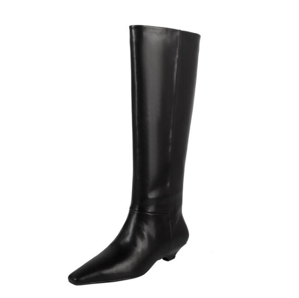 INS Высокие женские ботинки челси из натуральной кожи на низком каблуке, ботфорты до колена, элегантная осенне-зимняя женская обувь, черные, коричневые 34 чёрный