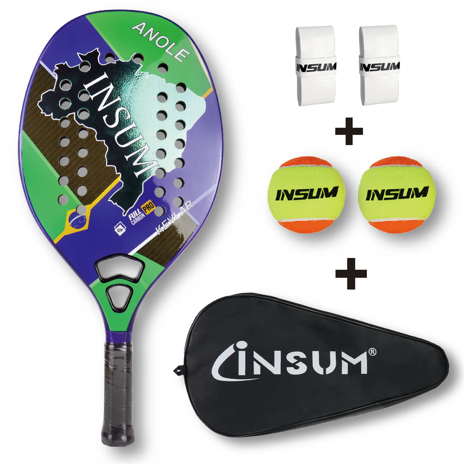INSUM Beach Tennis Racket Carbon Fiber With Soft EVA Racket Suitable For Training Beach Tennis Set - 6 Pieces