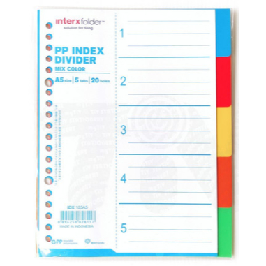 INTER X FOLDER - Index Divider A5 - 5 Tab - Pembatas Binder Note